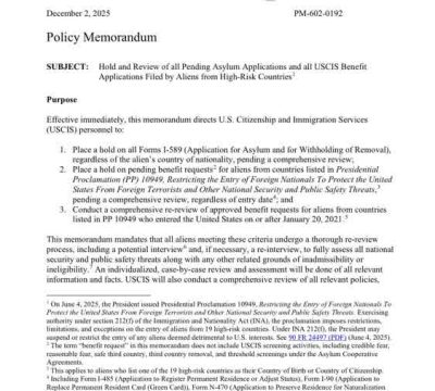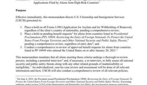 امریکہ نے 19 ممالک سے امیگریشن روک دی واشنگٹن:(الیون نیوز)امریکی حکومت نے اعلان کیا ہے کہ اب وہ 19 ممالک کے باشندوں کی تمام امیگریشن درخواستوں کی پروسیسنگ موقوف کر رہی ہے۔ اس فیصلے کا اطلاق گرین کارڈ، ویزا اور…